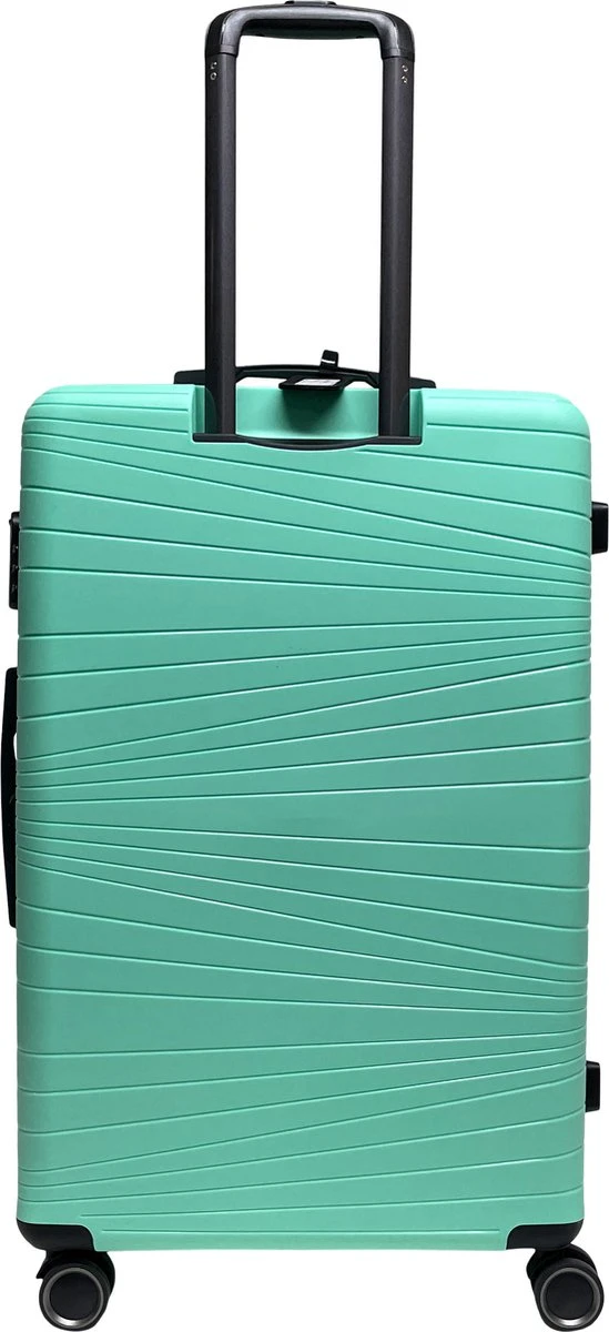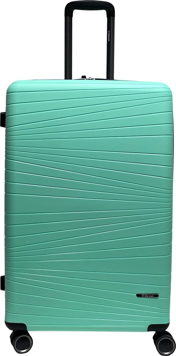 Grote hardschalen koffer van het merk Benzi, gemaakt van lichtgewicht polypropyleen. De koffer is voorzien van een ritssluiting rondom die op slot te zetten is middels een vast cijferslot op de zijkant van de koffer. Binnenin gevoerd, spanbanden en tussenschot met ritssluiting. Op het tussenschot zit een ritsvak en twee steekvakken voor het overzichtelijk opbergen van kleine reisaccessoires. Handvat op bovenkant en zijkant, uitschuifbare trekstang en comfortabel 4-wiel systeem. Voorzien van adreslabel.