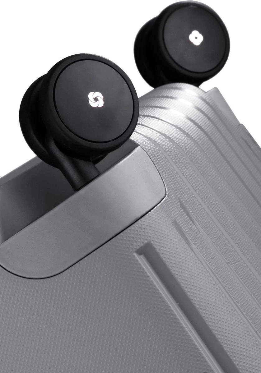 Samsonite reiskoffer – S’CURE SPINNER 55/20 (Handbagage) Zilverkleurig – Ontdek S’Cure, onze lichtste polypropyleen collectie met driepuntsluiting tot nu toe. Samsonite slaagde erin om een ultralichte en supersterke collectie te maken dankzij Flowlite®; een revolutionaire polypropyleenmix. Dit materiaal maakt zeer dunne injecties in de mal mogelijk, terwijl de schaal toch stevig blijft. • Deze collectie wordt in Europa vervaardigd. • Driepuntsluiting voor extra veiligheid. • Dichting om vochtinsijpeling te vermijden. • Dubbele wielen en een dubbele trekstang. • Interieur: verlaagde en gekruiste inpakriemen, tussenschot met rits en een ruim zijvak.